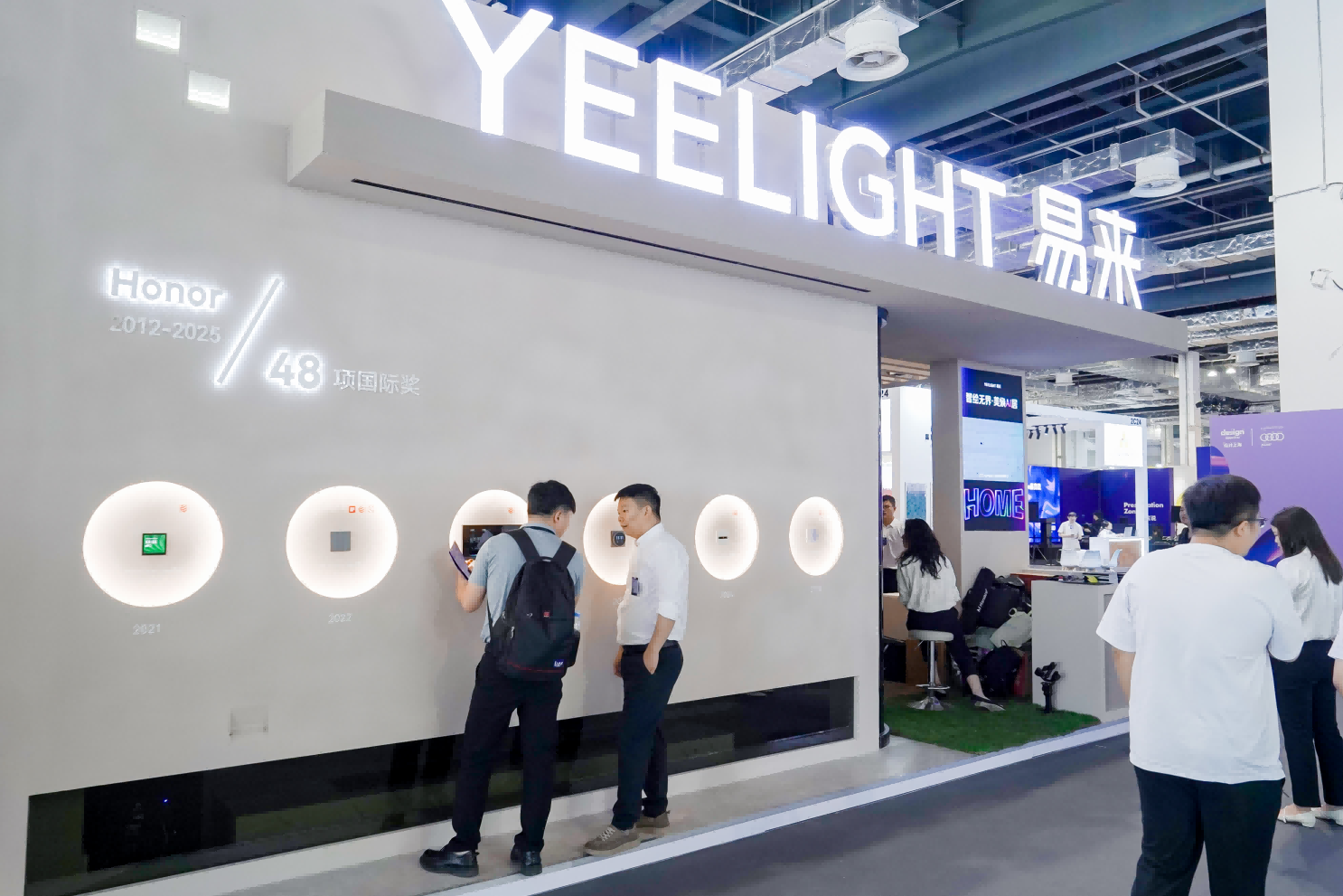 易来历年获得iF、红点奖等国际设计大奖的智能交互产品在展会上均有展出。其中,获得2025年德国红点至尊奖的Yeelight Pro D系列智能开关在展会现场成为焦点,其突破性设计与智能功能完美呼应了“智绘无界 美焕AI居”的主题,让开关从功能性工具升级为家居空间的视觉艺术品,为参观者呈现了未来家居交互的革新方向。