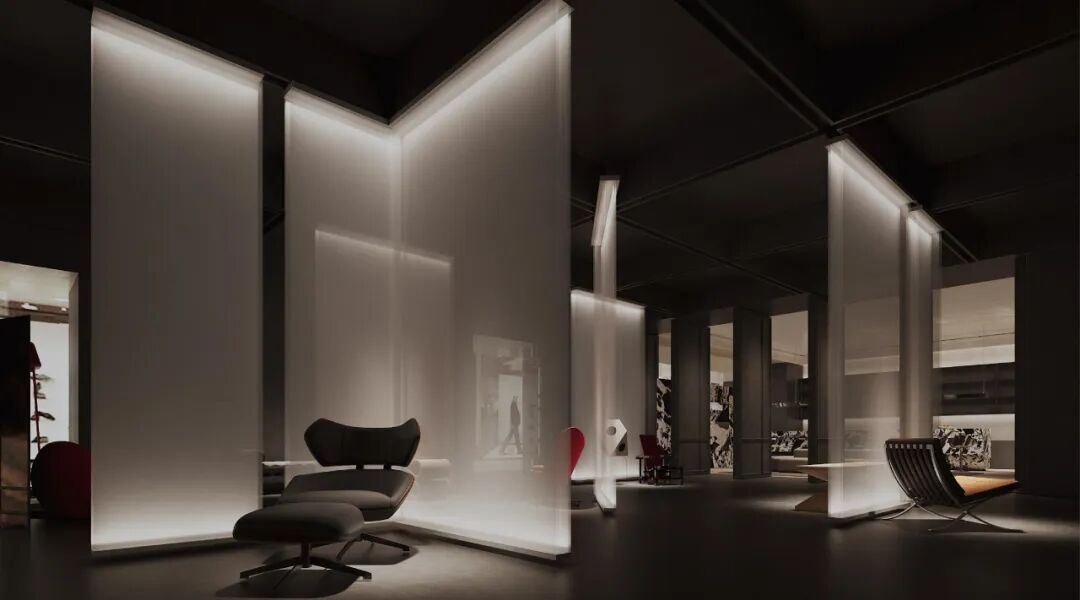 「国采馆」则以“软装+生活美学”为方向,涵盖全屋家具、软装灯光、家居用品三大品类,承接内装完成后的氛围营造与生活场景构建。