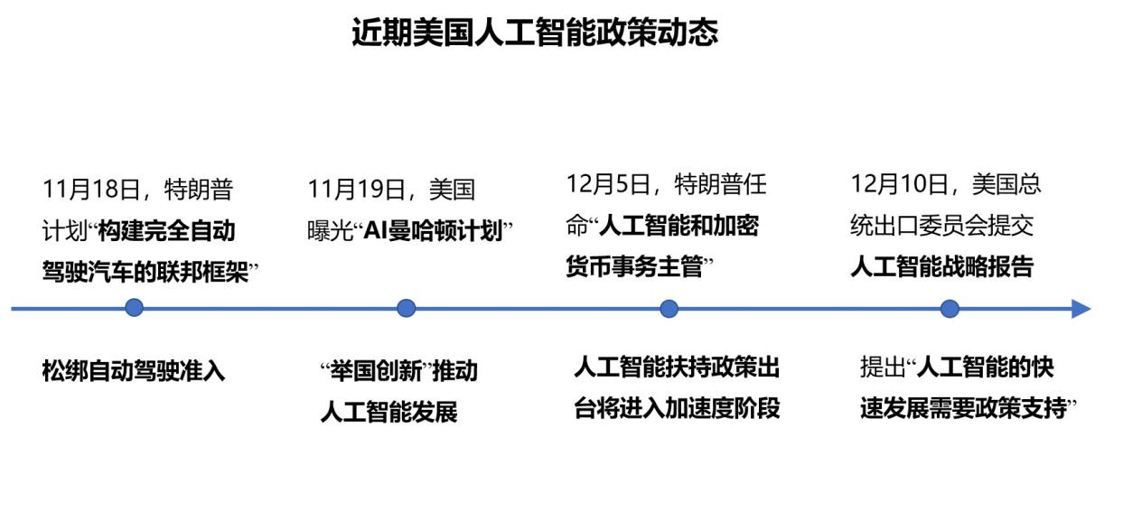 进入12月,美国人工智能“松绑AI监管”再提速。12月5日,特朗普宣布在白宫设立,首个专门负责AI事务的职位,“人工智能和加密货币事务主管”,这是特朗普意图推动行业快速发展再次体现。12月10日,总统出口委员会(PEC)向拜登提交人工智能战略报告,明确提出“人工智能的快速发展需要政策支持,以实现负责任的增长和创新”,建议国家应出手做好人工智能与就业的平衡,简化企业的监管合规流程。