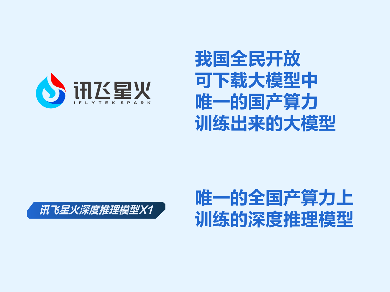 1月15日,科大讯飞发布了当前全国产算力平台上唯一的深度推理大模型——讯飞星火X1。该模型中文数学能力国内第一,并率先应用于教育、医疗等刚需场景。