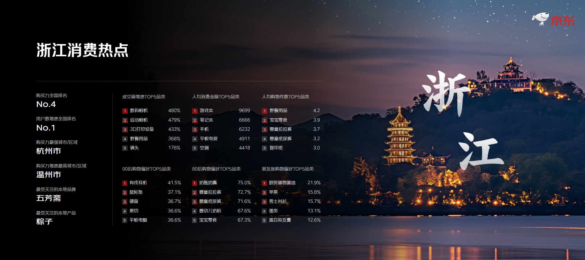 今年京东618,浙江省再次成为消费版图中不可或缺的中坚力量之一。“浙”里既有底蕴、又不失先锋性,期待浙江未来引领更多消费风潮。