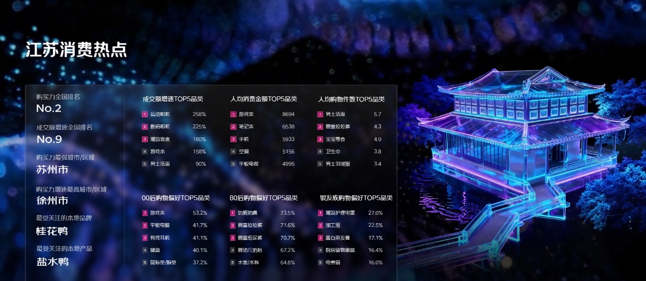 作为经济强省的江苏,在京东11.11这场消费盛会中再次用数据说话,凭借鲜明的消费特色与扎实的购买力,成为全国消费市场的核心力量之一。