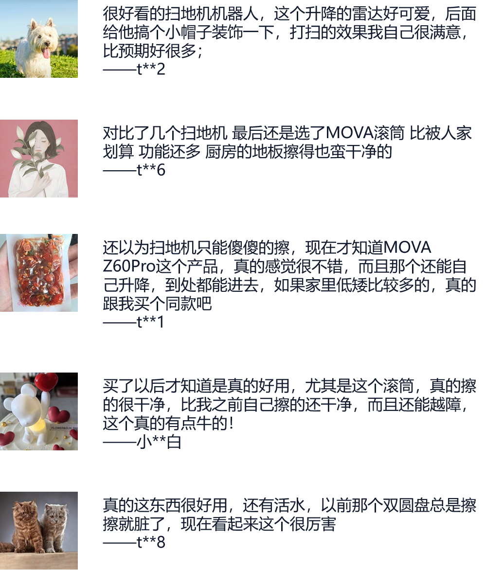 朋友和林女士在对比了多款热门扫地机器人之后,选择MOVA Z60 Pro的原因很明确: