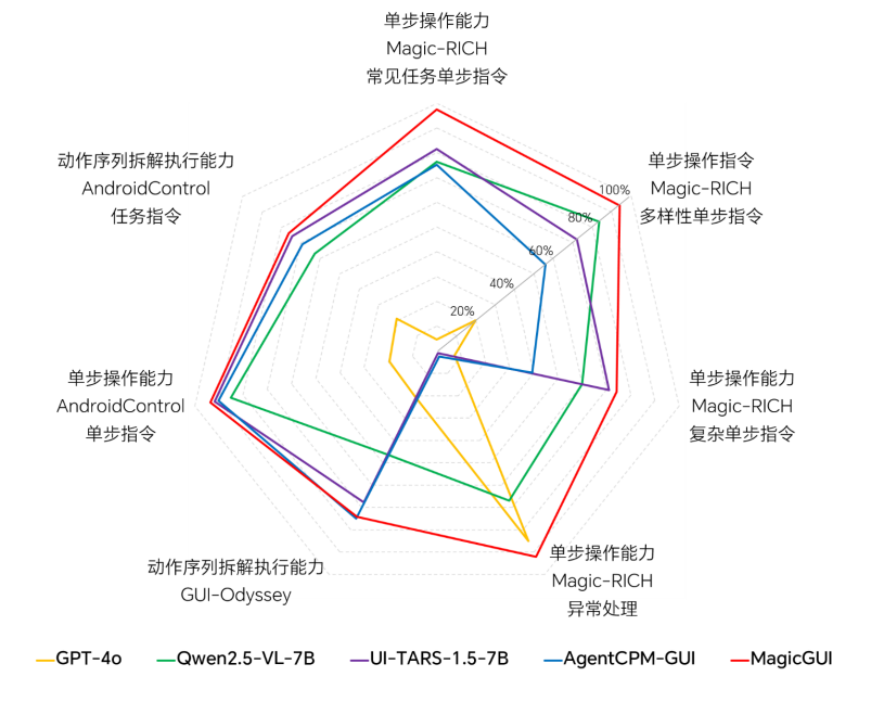 对于全球 AI 产业而言,MagicGUI 大模型的价值不仅在于降低了技术研发的门槛——全球开发者可基于开源资源快速构建差异化应用,更在于它为行业提供了一个开放的创新基座,推动 AI 技术从“同质化竞争”转向“多样化突破”,最终满足千行百业对 AI 服务的个性化需求。