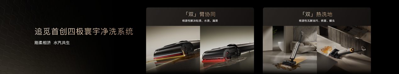 在追觅看来,清洁的意义不止于“干净”,更要实现“轻松、健康与美感”的统一。这一理念贯穿于每一次技术创新与产品迭代之中:从灵捕升降机械臂到AI「双刮洗」机械臂,从极致轻薄到蒸汽双热系统,追觅洗地机不断推动行业迈向更高标准。