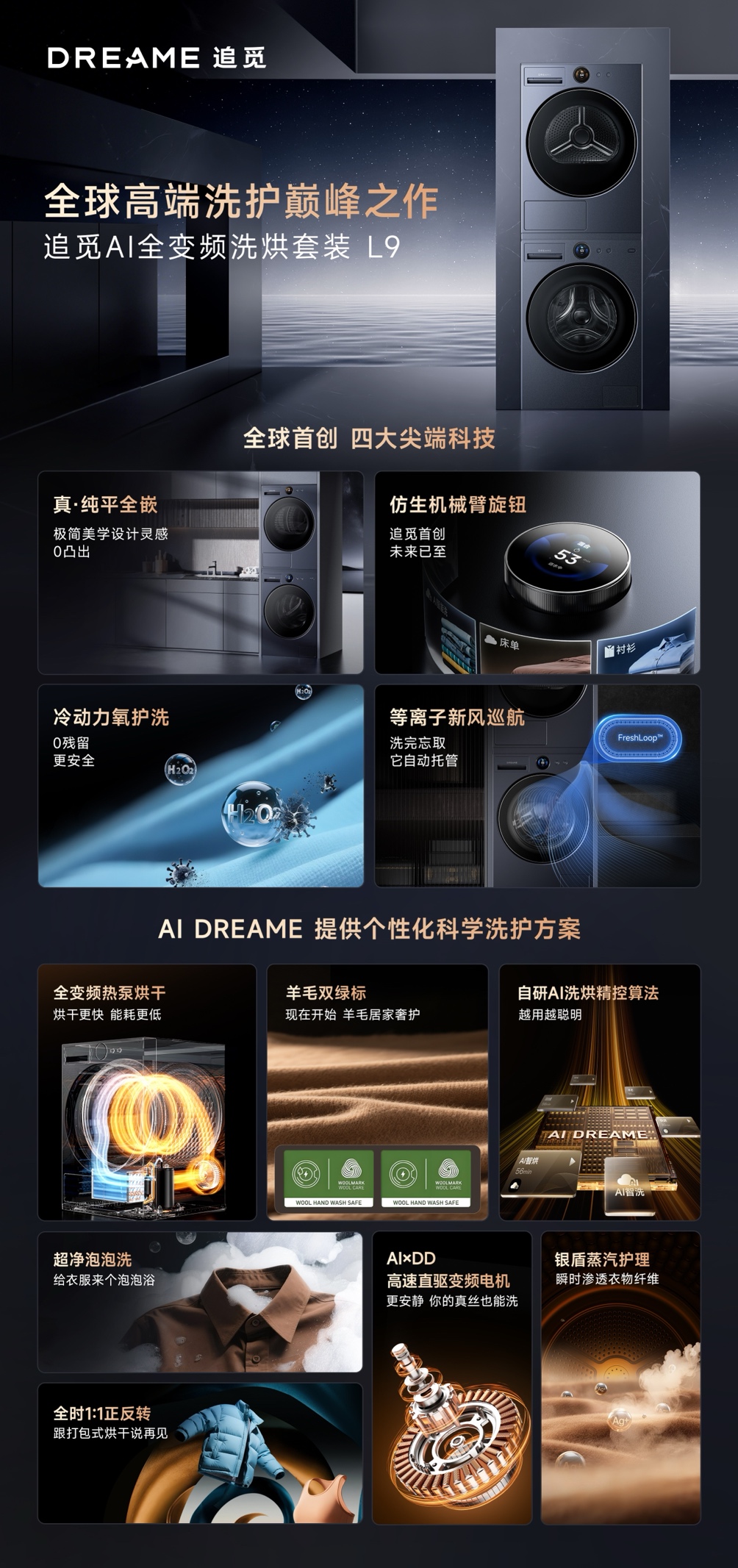 此次发布会不仅展现了追觅对高端洗护赛道的前瞻布局,更释放出品牌清晰而坚定的信号:通过科技与美学的深度融合,追觅正加速构建全球化的高端家电生态,以硬核技术、国际化视野和持续的创新投入,推动行业标准不断进化。L9不只是一台洗衣机,而是一次对未来生活方式的重新定义。
