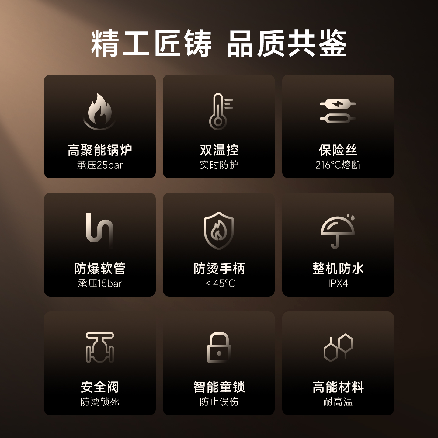 在安全防护方面,「万洁星」SC10也下足功夫。核心的高聚能锅炉,承压能力高达 25bar,防爆软管可承压15bar,并配备双温控保护及216℃熔断保险丝,全方位保障使用安全。同时,整机具备IPX4级防水设计,手柄温控控制在45℃以下,避免用户在操作过程中的烫手风险。