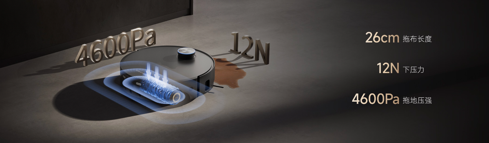 X50 Pro滚筒版拥有行业最长的拖布长度、最大的下压力和高达4600Pa的拖地压强,这一组合创造了无可匹敌的清洁性能。相比传统滚筒扫地机,追觅的滚筒长度长达260mm,这意味着清洁覆盖面积更大;同时配合行业顶尖的12N下压力,确保即使是顽固污渍也能一次清理干净。
