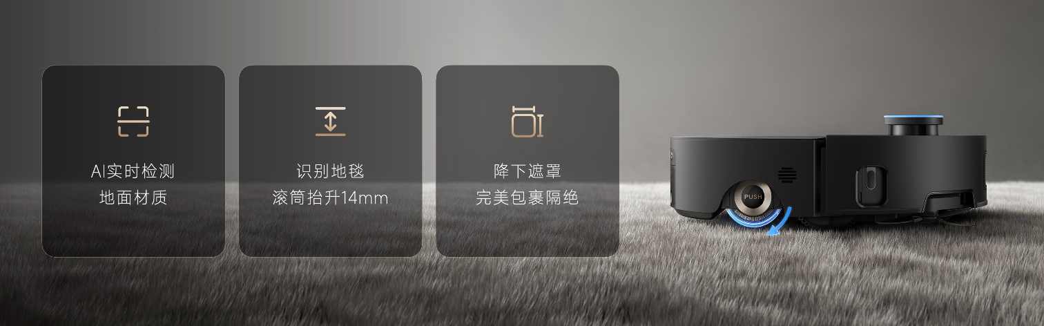 主动式物理隔绝:一旦检测到地毯,滚筒模块会自动抬升,一个特制的避水遮罩会同步降下,如同为拖布“穿上雨衣”,实现拖布与地毯的零接触,从根源上“干湿分离”。