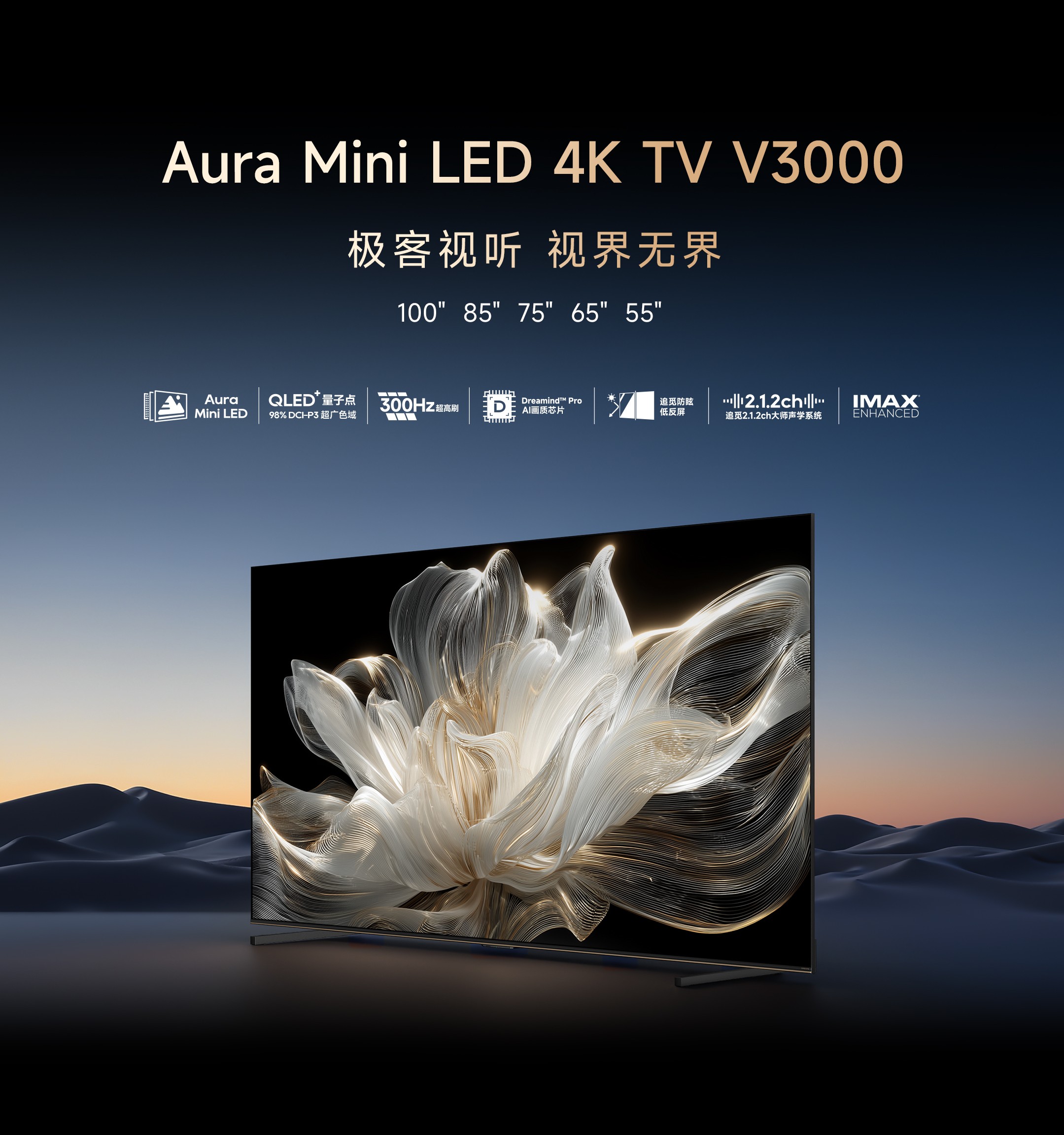 除了出色的抗反光表现,V3000系列还搭载了追觅自研的Aura Mini LED背光技术,能够呈现10.7亿色和98% DCI-P3电影级色域,画面细节更加丰富细腻。同时配备的AI智能识别功能,能在观看体育赛事时自动增强动态清晰度,播放纪录片时优化自然色彩,连接游戏机时切换低延迟模式,让每种场景都能获得最佳体验。
