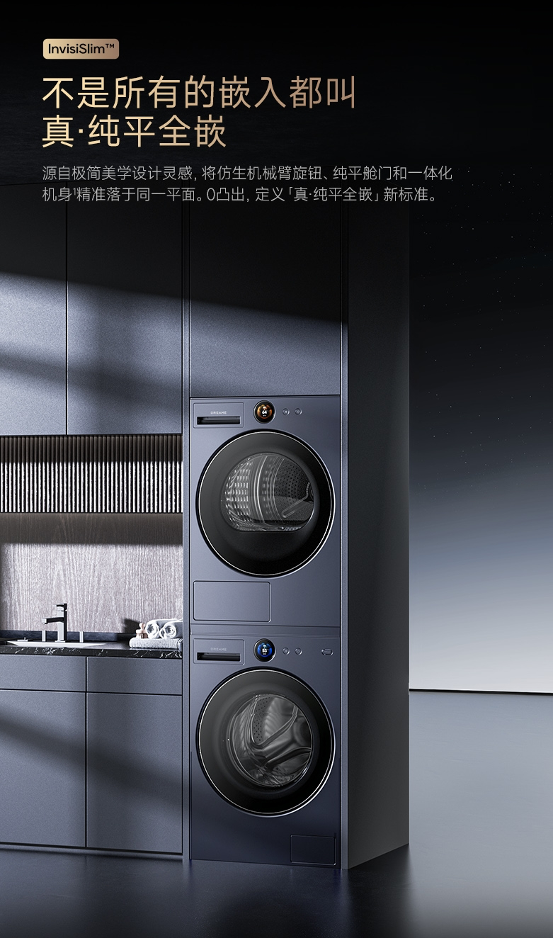 作为全球首个“真·纯平全嵌”,创新性将机身、门板、旋钮,完全置于同一水平面。外形在造型线上既保留硬朗的几何结构,又兼顾了空间柔和感。线条不突兀、轮廓干净,在视觉上显得轻盈。面对家居空间的多样性,它具备较好的包容性,能够在现代客厅、阳台、洗衣房里自然融合,而不显得生硬。