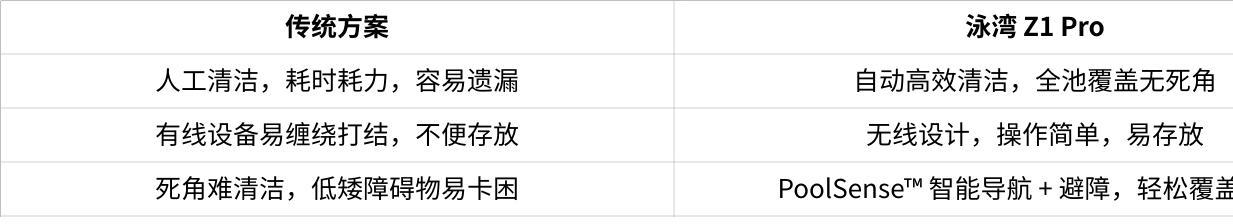 “谁来打理泳池?”这个经典问题往往打断了家人的欢乐时光,也消耗了大家共处的宝贵片刻。长时间的维护需要增加时间与人工成本,泳池 Z1 Pro 的到来,让“泳池清洁”不再是负担,而是轻松、智能、甚至充满乐趣的体验。