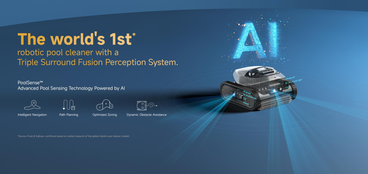 全球首款搭载三重感知融合系统的机器人泳池清洁器