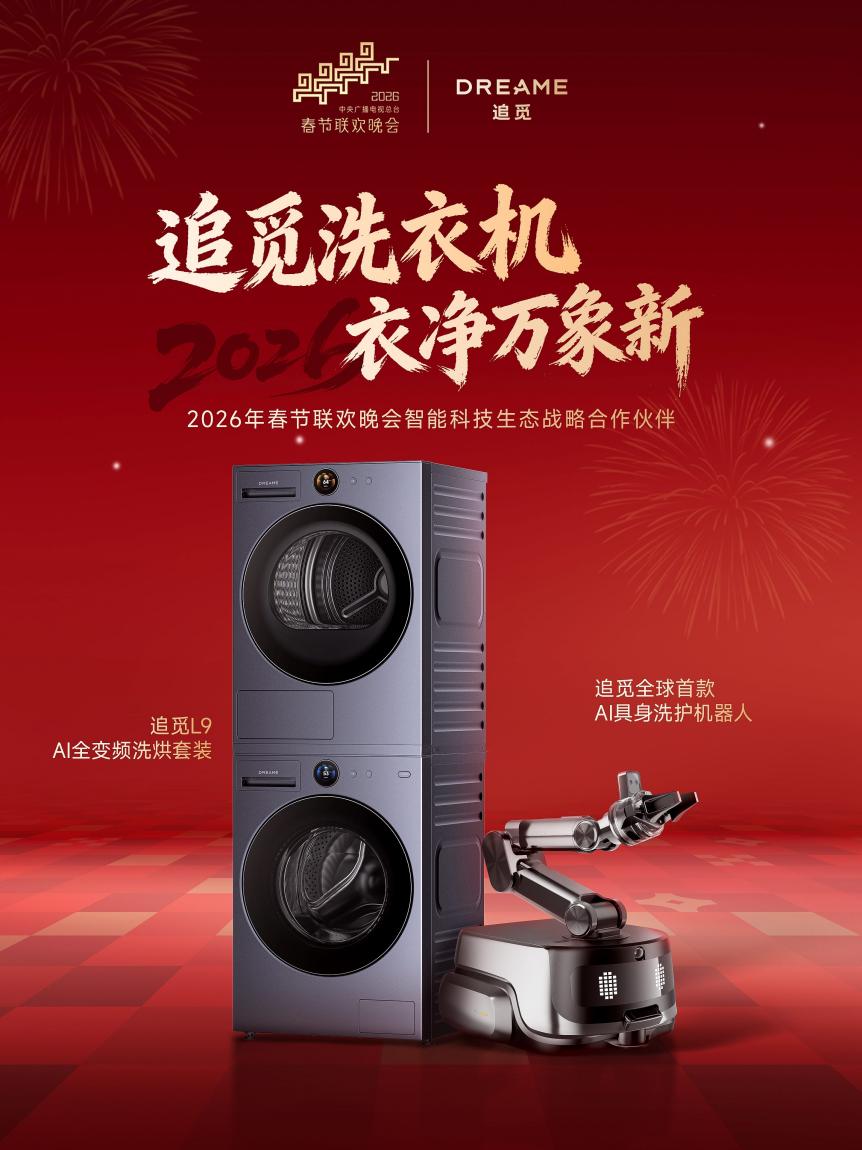 当国民春晚的文化底蕴遇见追觅洗衣机的科技锋芒,一场能改写行业格局的双向赋能,正式拉开序幕。近日,追觅科技正式官宣,成为中央广播电视总台2026年春节联欢晚会智能科技生态战略合作伙伴,将硬核奢护科技,融进千家万户的年味里。