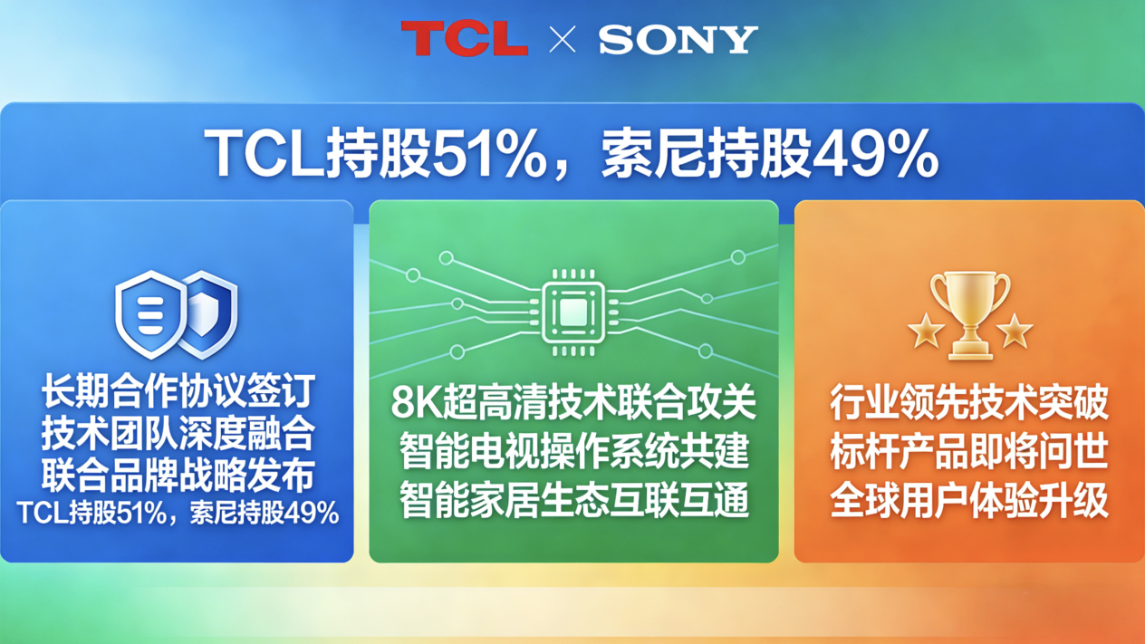 TCL与索尼的这次合资,超越了传统的并购逻辑,它不再是简单的“以大吃小”或“收购品牌”,而是基于动态比较优势的深度分工重组。一方从重资产的“运营竞争”中抽身,专注于成为“标准与技术的制高点”;另一方则以强大的“规模与效率平台”为依托,承接顶尖标准的产业化与市场化重任。这种“技术品牌+效率制造”的联盟,可能在未来更多行业中出现。