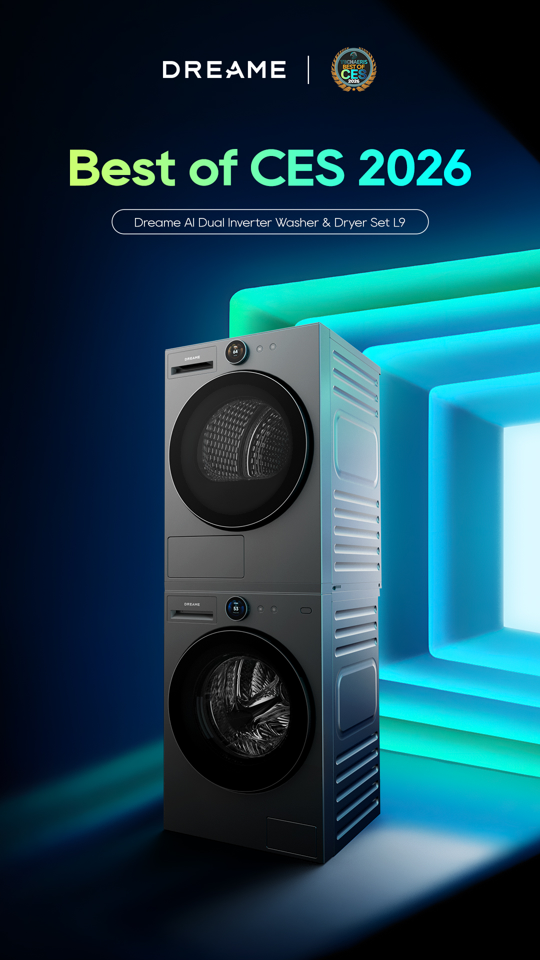 本次发布会的另一大核心看点,是刚刚在CES荣获「Best of CES 2026」的L9洗烘套装。它搭载追觅自研的AI洗涤与烘干算法,配合双变频热泵烘干及蒸汽免熨护理系统,如同为衣物配备一位专业护理师,将繁琐的洗衣流程转化为高效、柔护、平整如一的高端体验。