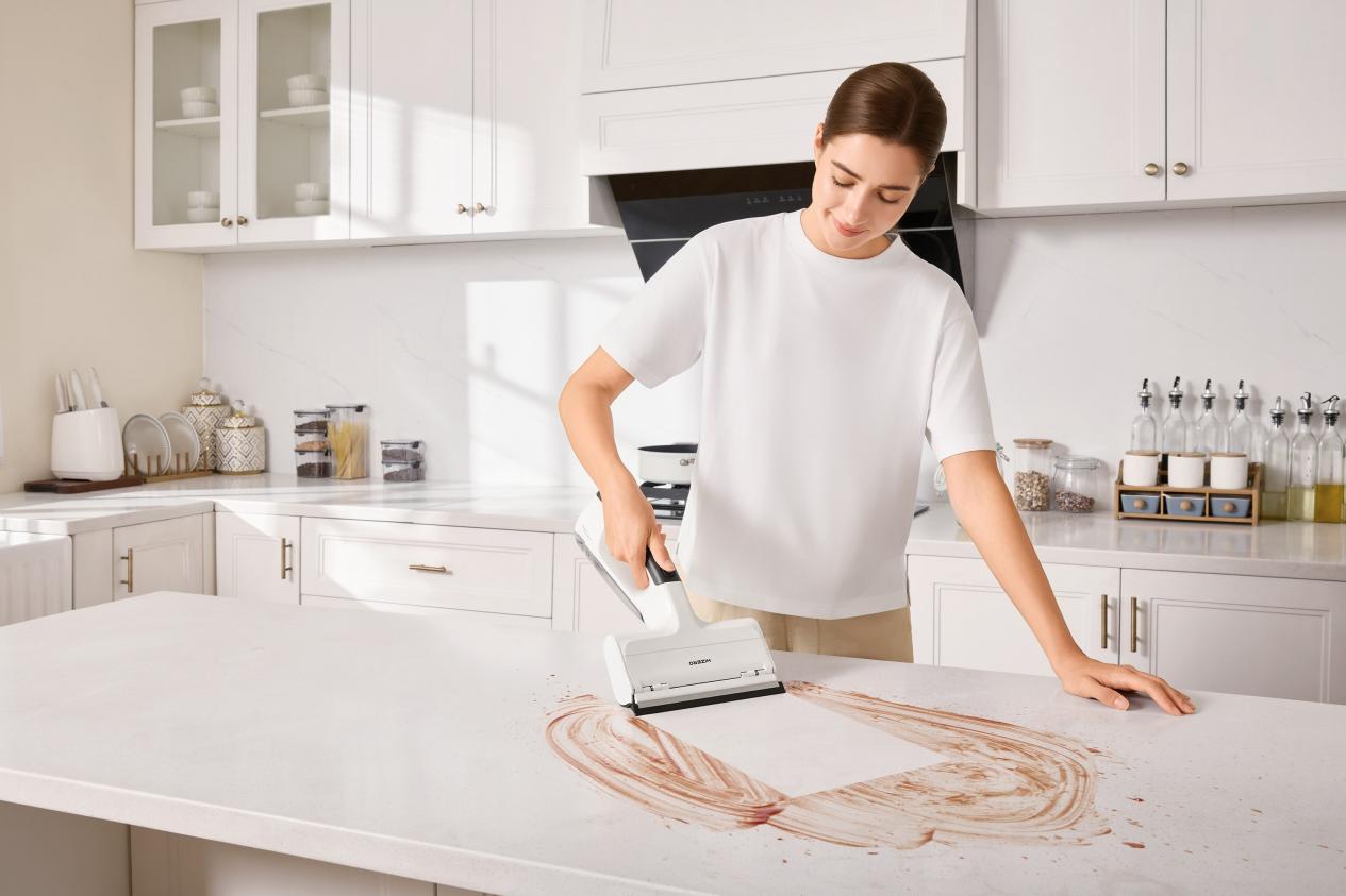 H100R电子抹布机首次将革命性自清洁滚筒应用于台面、玻璃等场景,终结了抹布“越擦越脏”的历史;