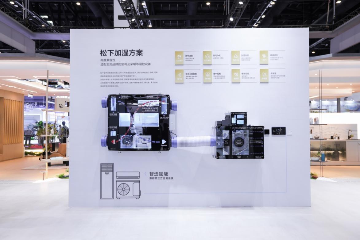全热交换新风系统(ERV)与智能调湿技术是松下展出的第二项核心技术。该系统在引入新鲜空气时,通过全热交换芯体使送风温度接近室温,在体感舒适的同时减少能量损失。