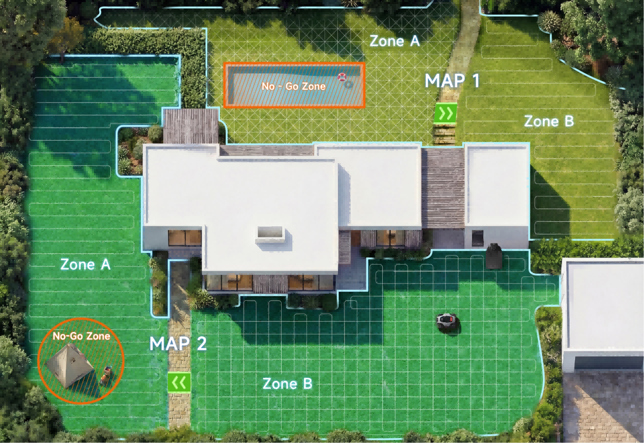 在智能感知层面,A3 AWD PRO搭载全新升级OmniSense™ 3.0超感知系统,集合360°全景3D激光雷达与双1080P HDR高清摄像头,构建全域立体感知网络,实现毫米级环境感知与厘米级精准定位。依托庞大数据库与AI算法加持,设备可精准识别300余种庭院常见动静障碍物,动态障碍识别准确率高达98%,毫秒级快速响应避障,有效规避宠物、儿童、玩具、园林摆件等物体,兼顾作业效率与居家安全。