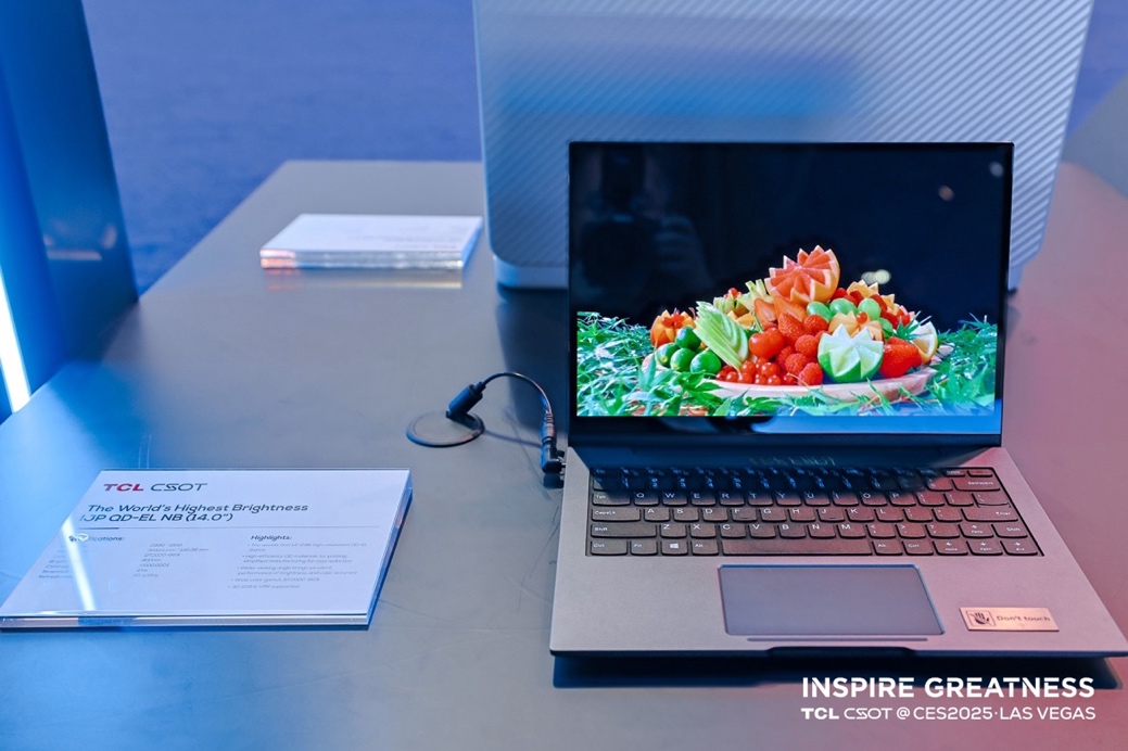 全球最高亮度印刷QD-EL笔电屏(14" )