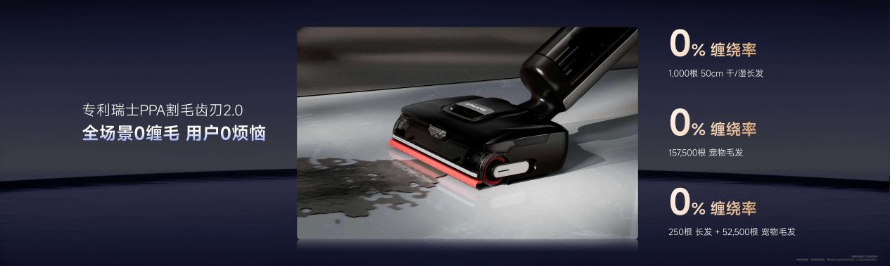 针对毛发缠绕的挑战,追觅T50 Ultra洗地机搭载瑞士PPA割毛齿刃2.0技术。与1.0技术相比,2.0技术显著增强了对混合毛发的清洁效果,不仅能高效处理人类的长发,还专门针对家庭中常见的宠物毛发进行了优化,包括长绒毛、短绒毛和长硬毛等,有效解决了宠物毛发易缠绕的问题。得益于这一技术升级,无论是处理宠物毛发还是人类毛发,都能做到滚刷“全场景0缠毛”,真正覆盖了家庭全毛发清洁场景。