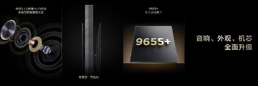 超强的产品力不止于此,TCL Q9L Pro系列还在音响、外观和主机芯上实现跨越式的硬件实力提升。安桥品牌的2.1.2 Hi-Fi音响,拥有5声道专业配置,实现物理环绕效果,并配置2个独立天空声道,更是让声音层次更加丰富,形成360°全方位3D立体环绕的声场效果,让用户感受飞机呼啸掠过头顶的真实震撼。外观则由原来的超薄一体化升级为“极致薄”,好看更好用。主机芯从9653升级为9655 PLUS,不仅性能翻倍,且接口更加丰富。