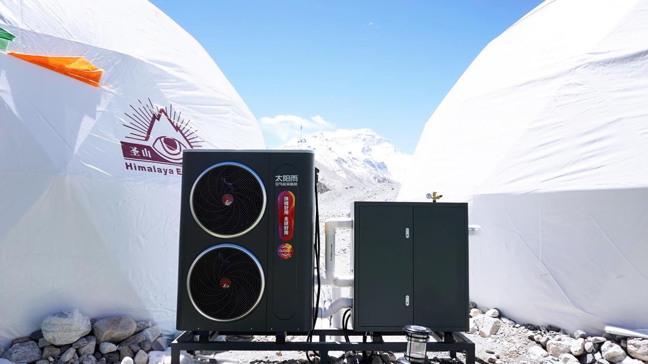 自2023年产品首次进驻珠峰大本营以来,该采暖机连续3年被部署于海拔5200米的大本营和6500米的前进营地,在零下30℃的极寒环境中稳定运行,为国内外登山团队提供持续供暖。高海拔地区的低压、低温环境对设备制热效率和能耗控制提出严苛要求,而该产品凭借复叠式热泵技术和低温无衰减性能,成功通过考验。这一案例不仅验证了技术的成熟度,更拓展了空气能热泵在极端场景下的应用边界。