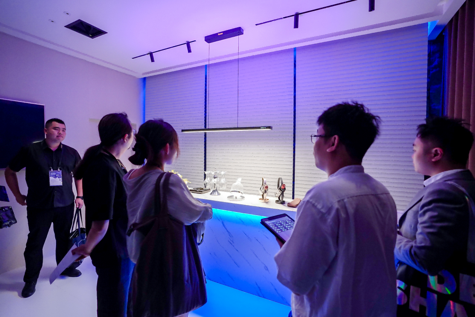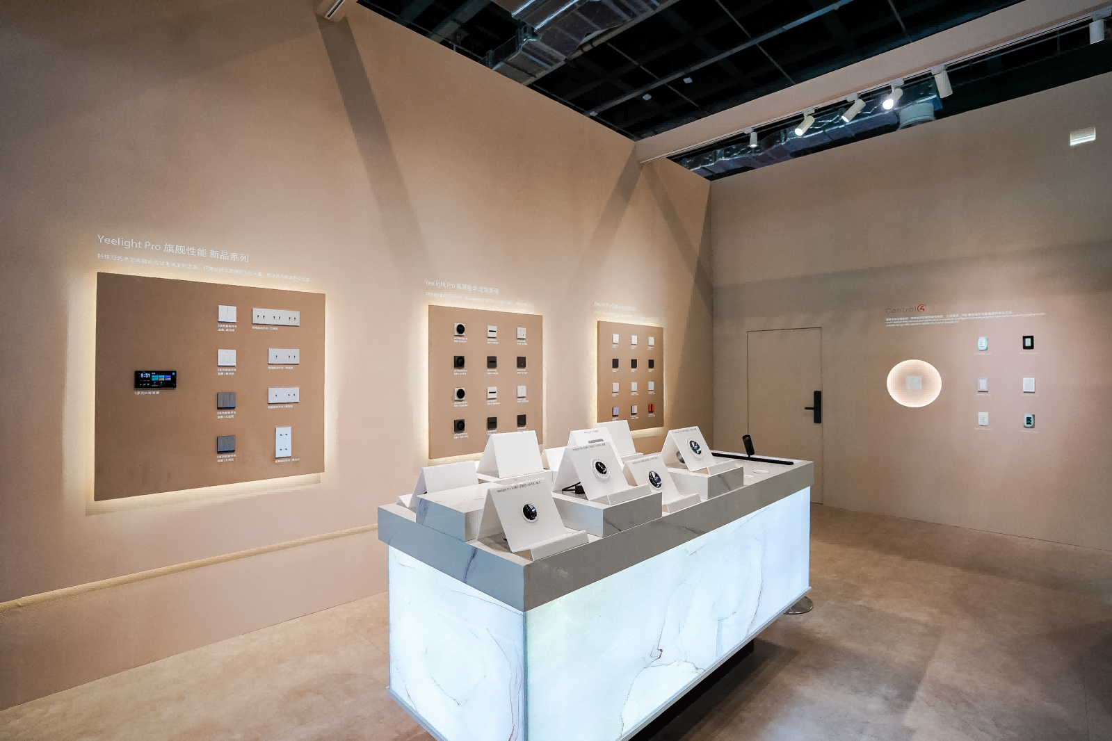 在静态展示区,聚焦Yeelight Pro展示了全系列智能交互产品,包括新品Yeelight Pro S系列AI智慧屏、Yeelight Pro E系列智能开关,以及旗舰产品Yeelight Pro S系列墙面旋钮开关和情景开关等。包括各种引领行业的筒射灯产品,例如Yeelight Pro S2嵌入式射灯小孔出光版首次将13mm超微孔双色温系统引入家居领域,基于小孔成像原理研发的第二代玲珑透镜,搭配0.8mm超薄面环,彻底消除天花光斑噪点,呈现极致纯净光效,满足设计师的极致需求。