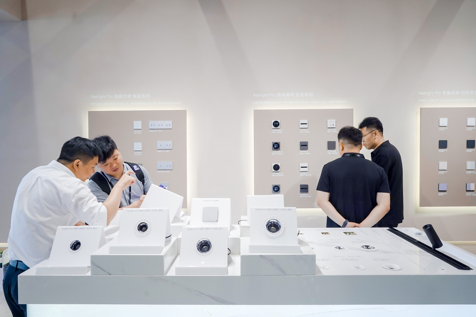 易来历年获得iF、红点奖等国际设计大奖的智能交互产品在展会上均有展出。其中,获得2025年德国红点至尊奖的Yeelight Pro D系列智能开关在展会现场成为焦点,其突破性设计与智能功能完美呼应了“智绘无界 美焕AI居”的主题,让开关从功能性工具升级为家居空间的视觉艺术品,为参观者呈现了未来家居交互的革新方向。