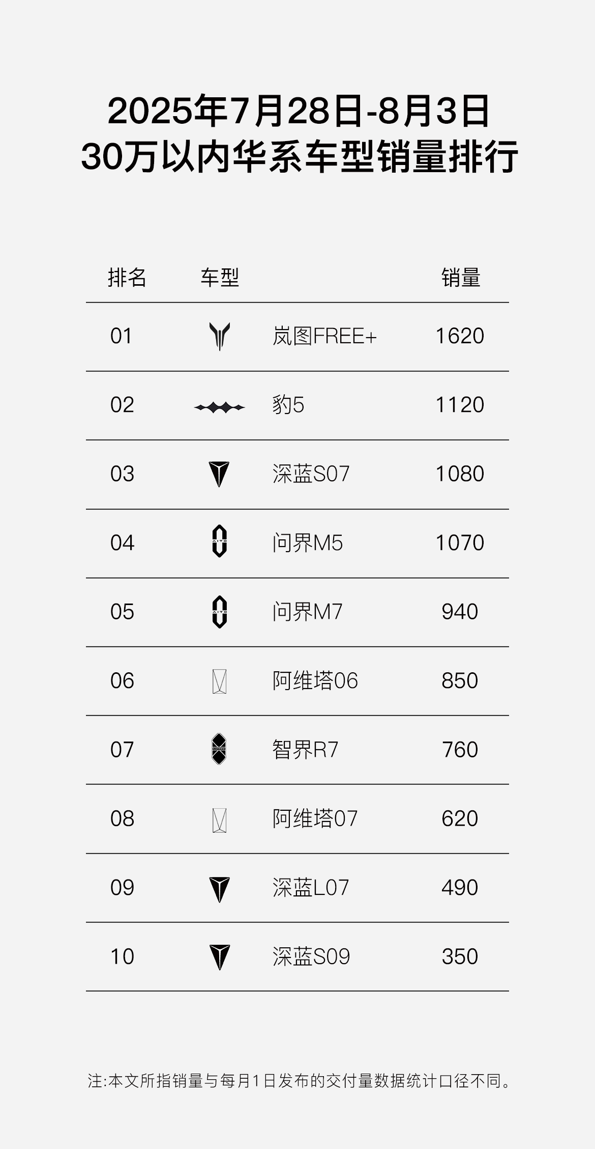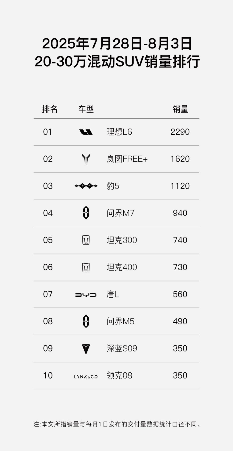 【2025年8月5日,武汉】 8月5日,岚图汽车发布最新销量捷报。岚图FREE+以单周交付1620辆的亮眼成绩,强势摘得“30万以内华系车型销量冠军”,并在“20-30万混动SUV”细分市场勇夺销量亚军,与榜首理想L6的差距仅为670辆。