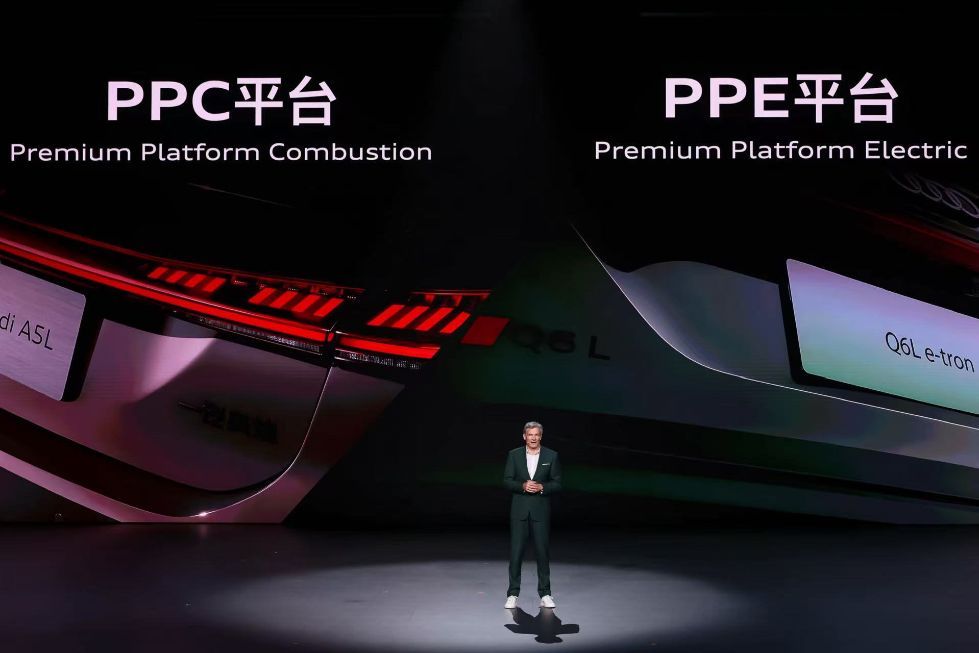 为深耕中国市场、进⼀步满⾜本⼟⽤户需求,奥迪始终坚持“在中国,为中国”战略。奥迪中国总裁罗英瀚致辞表示: “奥迪已在中国开启品牌史上最⼤规模的产品布局。从基于 PPE 平台的⾸款纯电⻋型,到基于 PPC 平台的内燃机⻋型,双线并进,协同发⼒。这充分印证了奥迪品牌果敢的战略抉择,以及对中国市场坚定不移的⻓期承诺。”