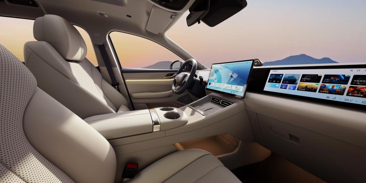 从视觉设计上看,设计师巧妙地借鉴了中国审美的中轴对称理念。仪表屏、中控屏与副驾娱乐屏从位置上层层递进,如同古建筑群落中的门殿院,营造出深邃的秩序感和空间纵深,更在功能上实现了清晰的分区,驾驶信息、车辆控制与乘客娱乐各司其职。
