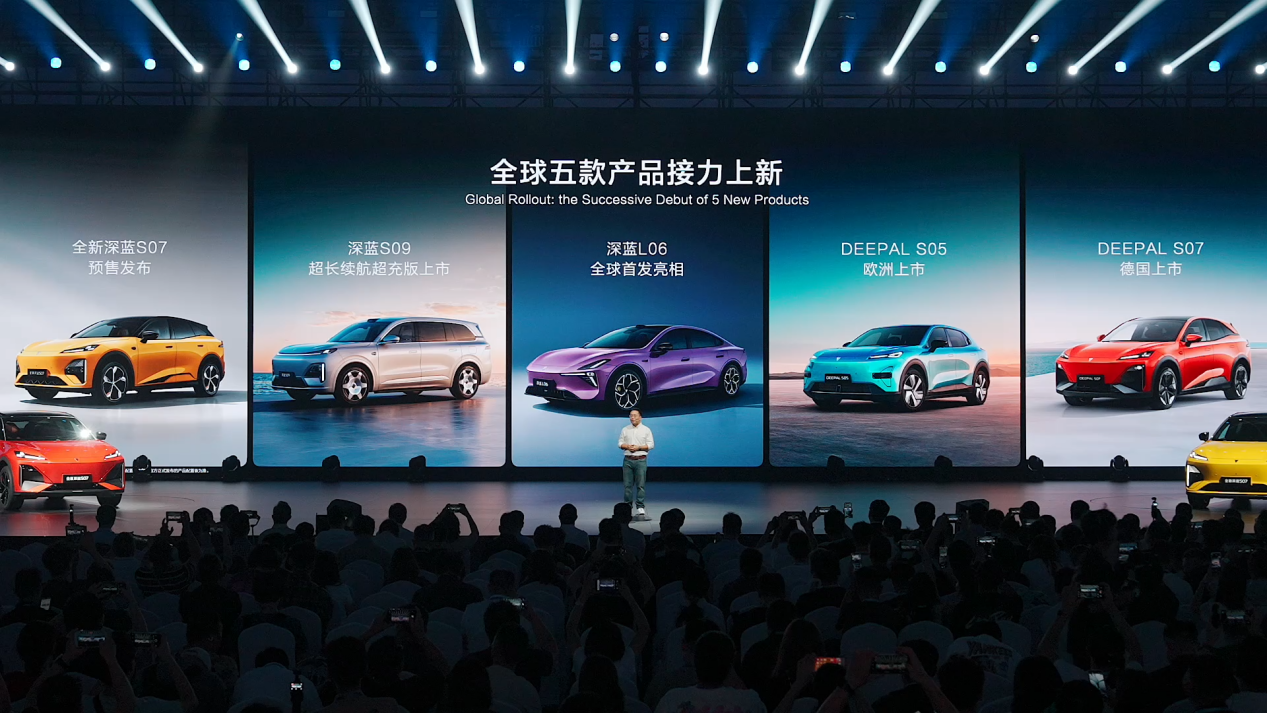 9月8日,重庆悦来国际博览中心,深蓝汽车以跨越重庆与德国慕尼黑的双城联动发布会,展示了五款全新车型。这场发布会是深蓝汽车升级为“新央企”后的首次大规模亮相,展现了中国新能源汽车产业从技术追赶到全球引领的战略转变。
