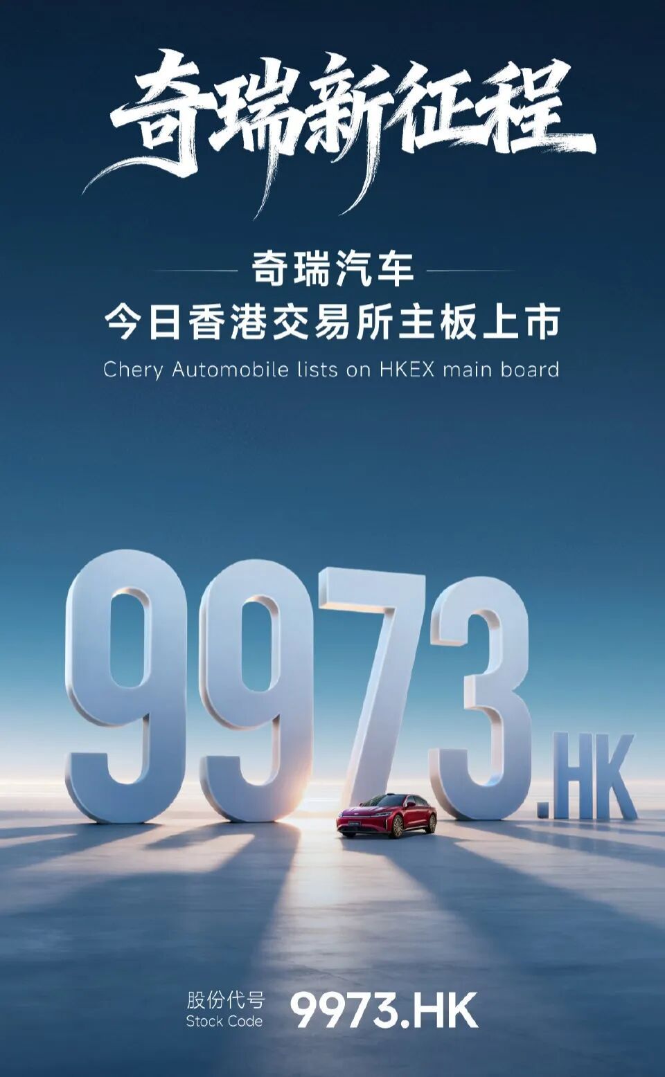 9月25日,奇瑞汽车股份有限公司(证券简称“奇瑞汽车”)在港交所正式挂牌上市,股份代号9973。奇瑞汽车以30.75港元/股的招股价上限定价,开盘涨超11%,募资规模达91.4亿港元,总市值1972亿港元,一举成为年内港股市场规模最大的车企IPO。