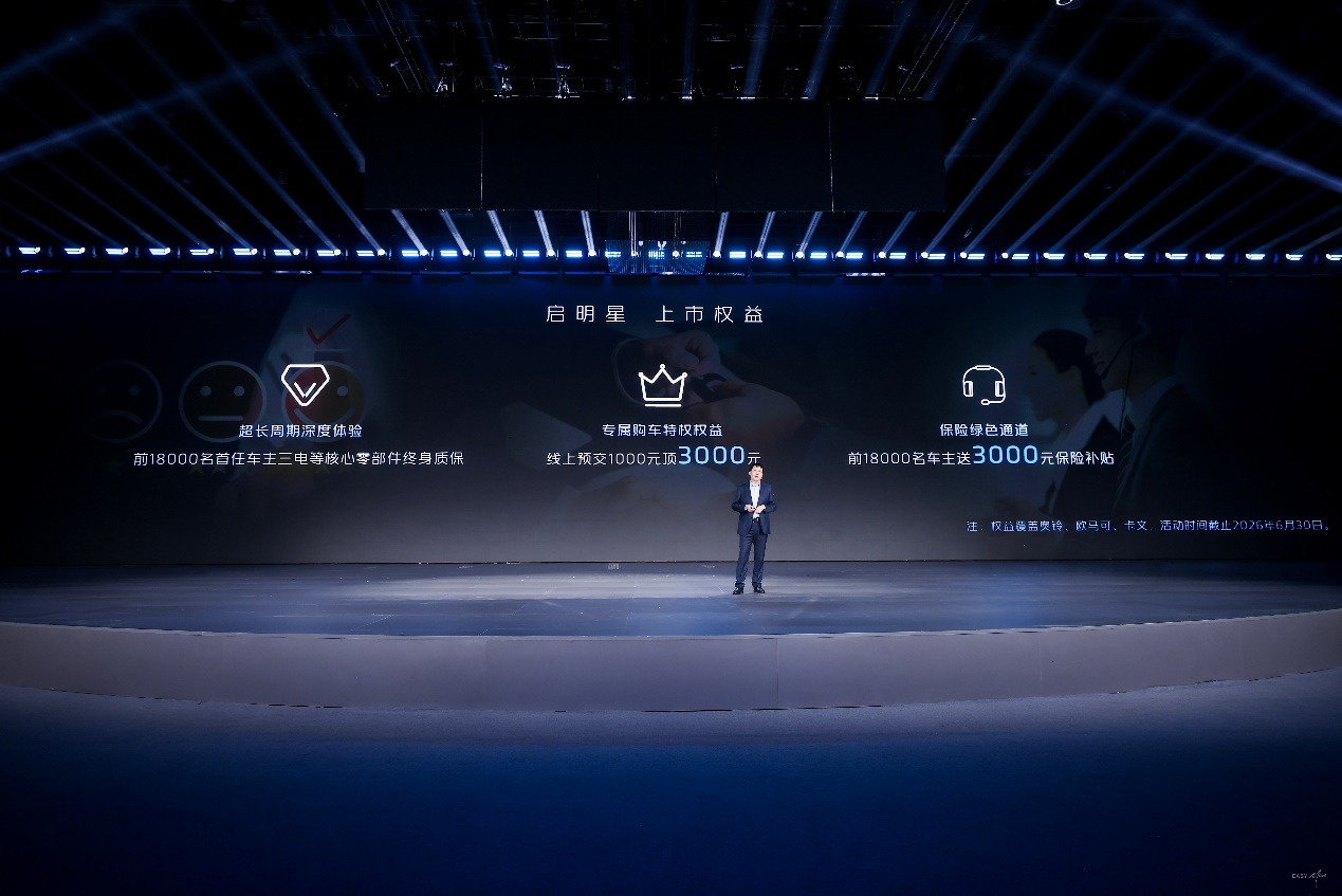 生态服务方面,启明星构建全场景增值服务生态体系,精准匹配不同客户需求:针对组织客户,推出含8年/80万公里精养、智检、一站式托管维修的整车打包服务;针对个人客户,提供灵活的单项或套餐服务,会员享专属折扣,实现省心省钱。金融保险方面,联合京东安联、平安等头部险企稳定承保;同时布局租赁、品牌认证二手车等创新业务,升级智福管车系统,搭建完善的二手车平台生态。数智层面,搭载高算力平台化T-BOX,智能车机全系标配,实现全域远程OTA;补能方面,完善经销商新能源运营生态,让用户更便捷。