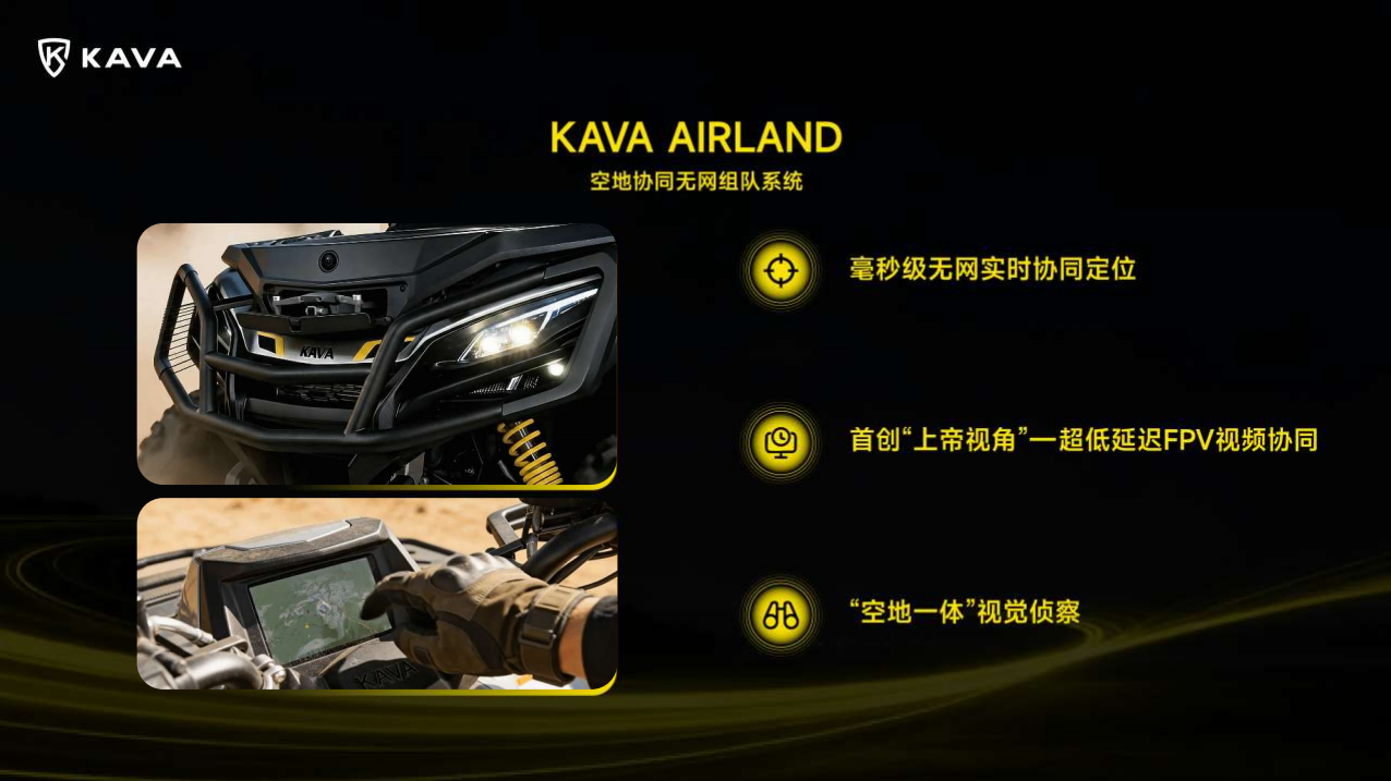 这一重构首先击中了户外场景最致命的痛点——信息孤岛。在传统车队穿越中,信息传递依赖手台和经验,队尾车辆对前方路况一无所知,这是最大的安全隐患。KAVA的 Kava Airland空地一体系统,其革命性在于构建了一个独立于公网的微型物联网。车辆与无人机、车辆与车辆之间,形成了实时数据共享的“蜂群思维”。无人机成为车队共用的“空中之眼”,其侦察画面实时同步至每一块车载屏幕。这意味着,整个车队拥有了统一的态势感知能力,决策从依赖个人英雄主义,变为基于透明信息的集体协作。这解决的并非锦上添花的“娱乐需求”,而是雪中送炭的“生存与效率”需求。