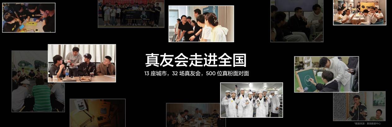 在过去的一年中,“真友会”走进了全国13座城市,举办了32场真友会,和500位真粉进行了面对面的沟通与交流。真我这些真诚的举动,不仅拉近了与粉丝之前的关系,更为真我的成长、创新和产品迭代提供了力量和源泉。