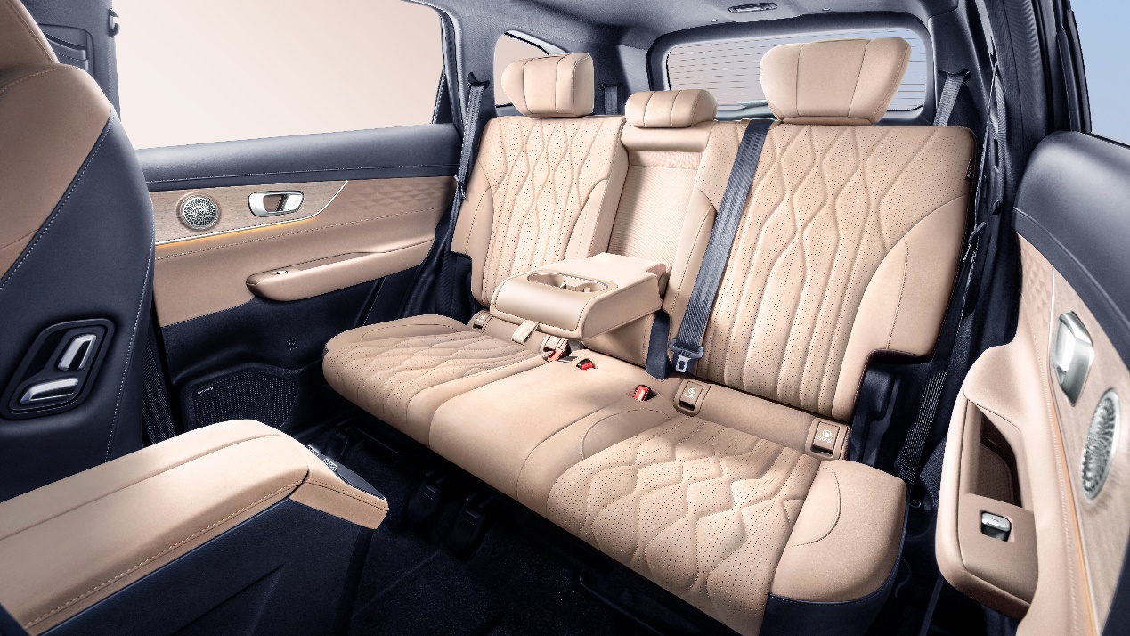 风云T8拥有4730x1860x1747mm的超大车身尺寸与2710mm的越级轴距,即使后排乘客也能拥有宛如商务舱的腿部空间。同时,风云T8全车软包面积达78.9%,真正做到了所触皆柔软,并配有女王副驾10点按摩+电动腿托,其支持5种按摩模式与3种力度可调,让用户的家人在出行途中也能卸去一身疲惫。为了进一步提高实用性与舒适性,风云T8配有副驾老板键,支持二排用户一键调节副驾座椅,且7座版二排还支持椅背、前后随心调节,让二排用户享受舒适的同时,也能在需要时为三排乘客带来更宽舒的乘坐空间。