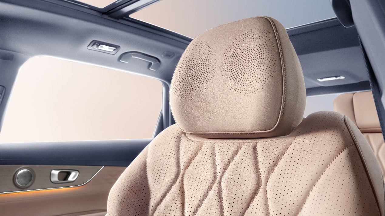 在配置上风云T8同样不留余力,新车搭载经过奇瑞金耳朵团队专属调音的SONY 12扬(含头枕音响),并支持一键音效调节,无论坐在哪一个位置都能享受身临其境的影院级氛围。同时,风云T8的主驾的头枕音响支持私享模式、共享模式,能在不同场景中,为用户营造出更专注、更沉浸的出行体验。