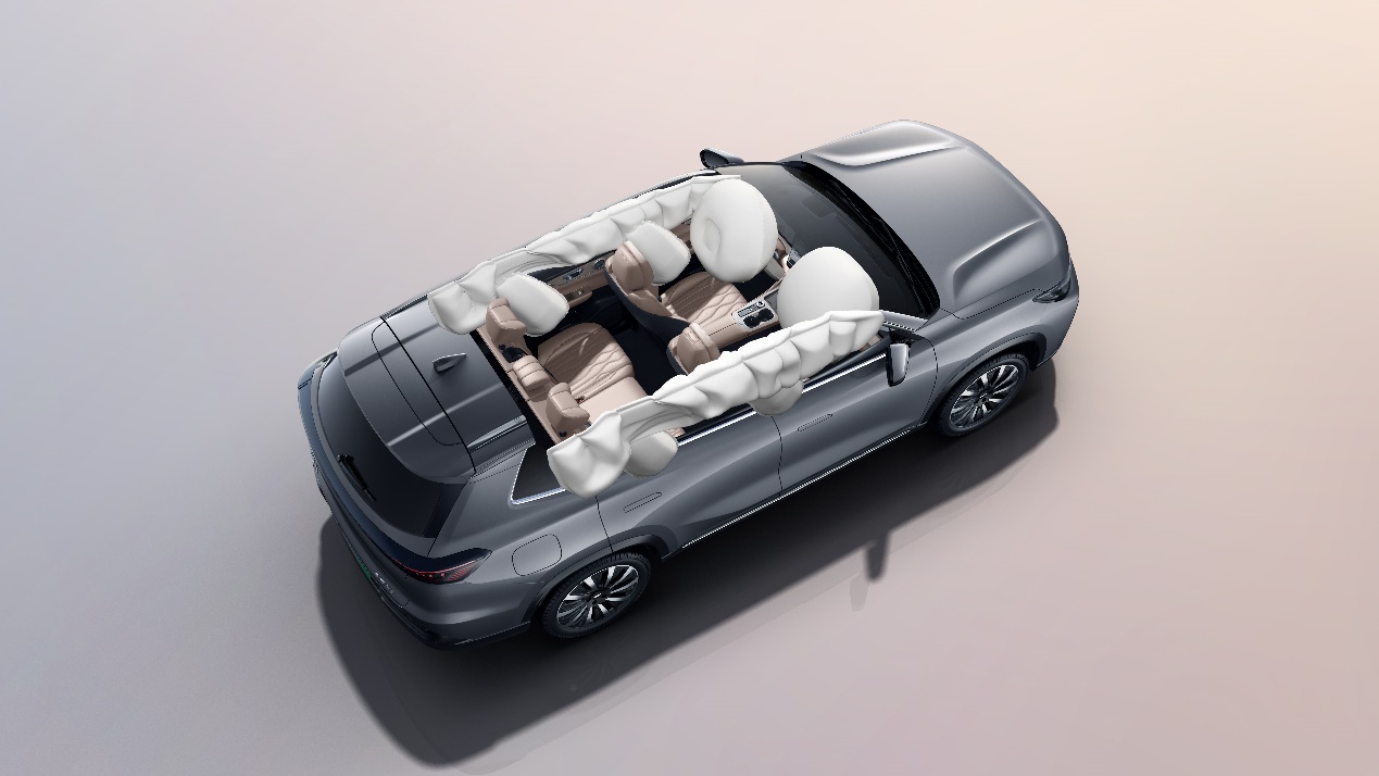 拥有磐石车身的风云T8整车高强度钢占比达80%、热成型钢占比达20.6%,且热成型钢覆盖到了车身各个关键部位,防撞钢梁厚度也达了2.8mm、目字防撞结构为140mm,并配有170mm的超宽吸能盒,能在发生碰撞时有效保障乘员舱的完整性。同时,风云T8还配有9安全气囊,其中贯穿式侧气帘长度达1605*505mm,碰撞6秒气囊内压仍能大于65%,可降低翻滚后的二次伤害,进一步提升出行安全性。