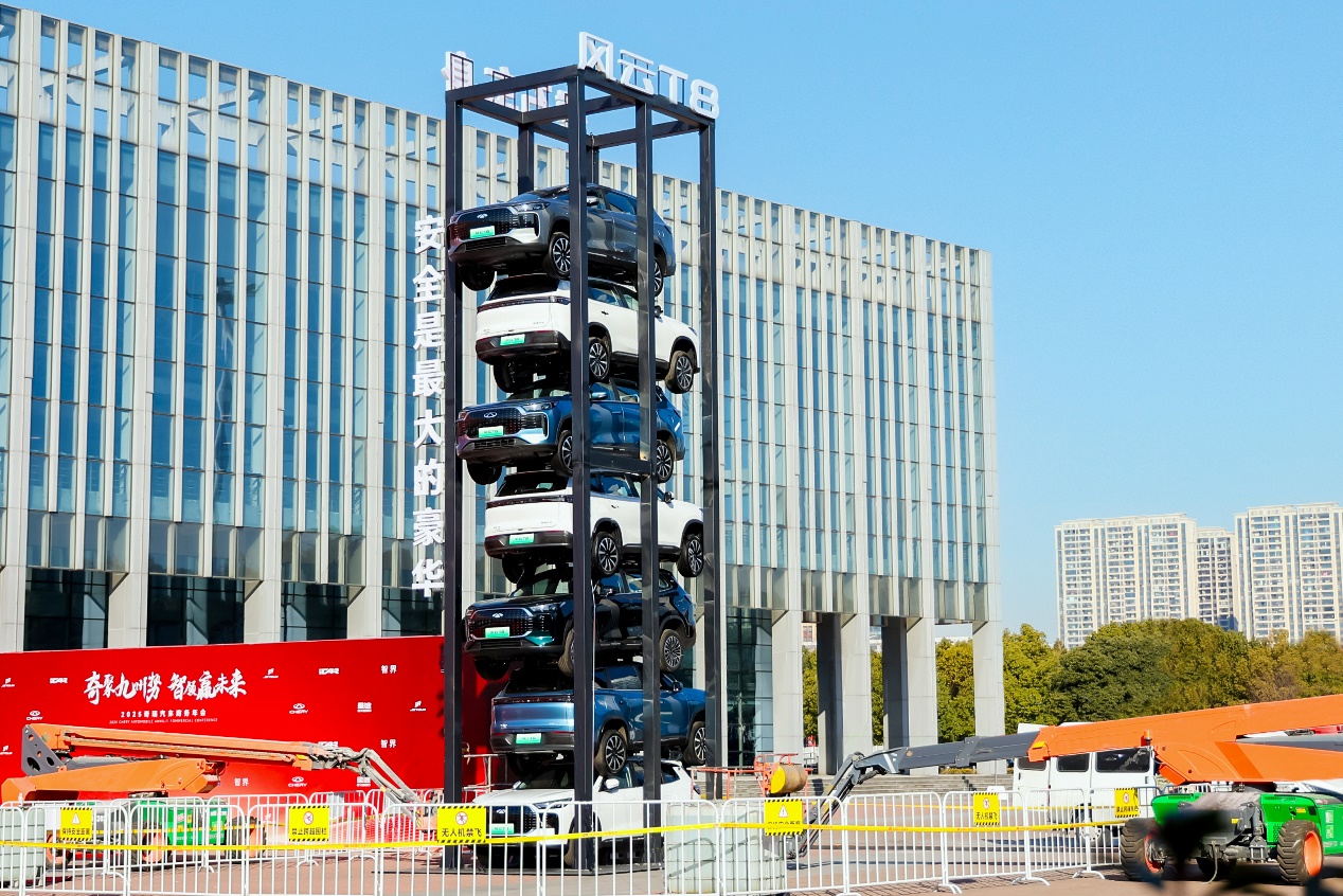 此次活动,风云T8还进行了新能源汽车首次挑战6倍自重的安全测试,从标准、结构、用料三大方面彰显了新时代国民车的新标准,顶住了民族汽车的安全脊梁。7辆风云T8叠成高度超10米的“车塔”,位于最下方的风云T8负重超过10吨,相当于顶住了近4头大象的重量。经过超72小时的严苛测试,风云T8无明显结构变形,彰显了硬核安全实力。