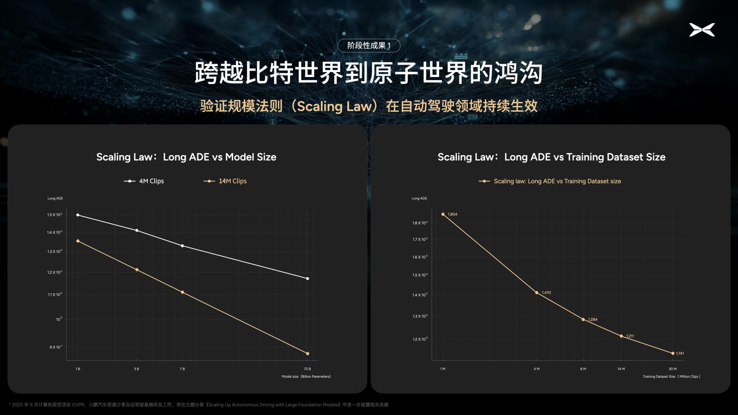 2024年是汽车行业的“端到端”之年,在率先量产端到端大模型一年之时,小鹏汽车又在物理世界大模型研发上再进一步。小鹏汽车在分享会上披露了基模研发的三个阶段性成果:
