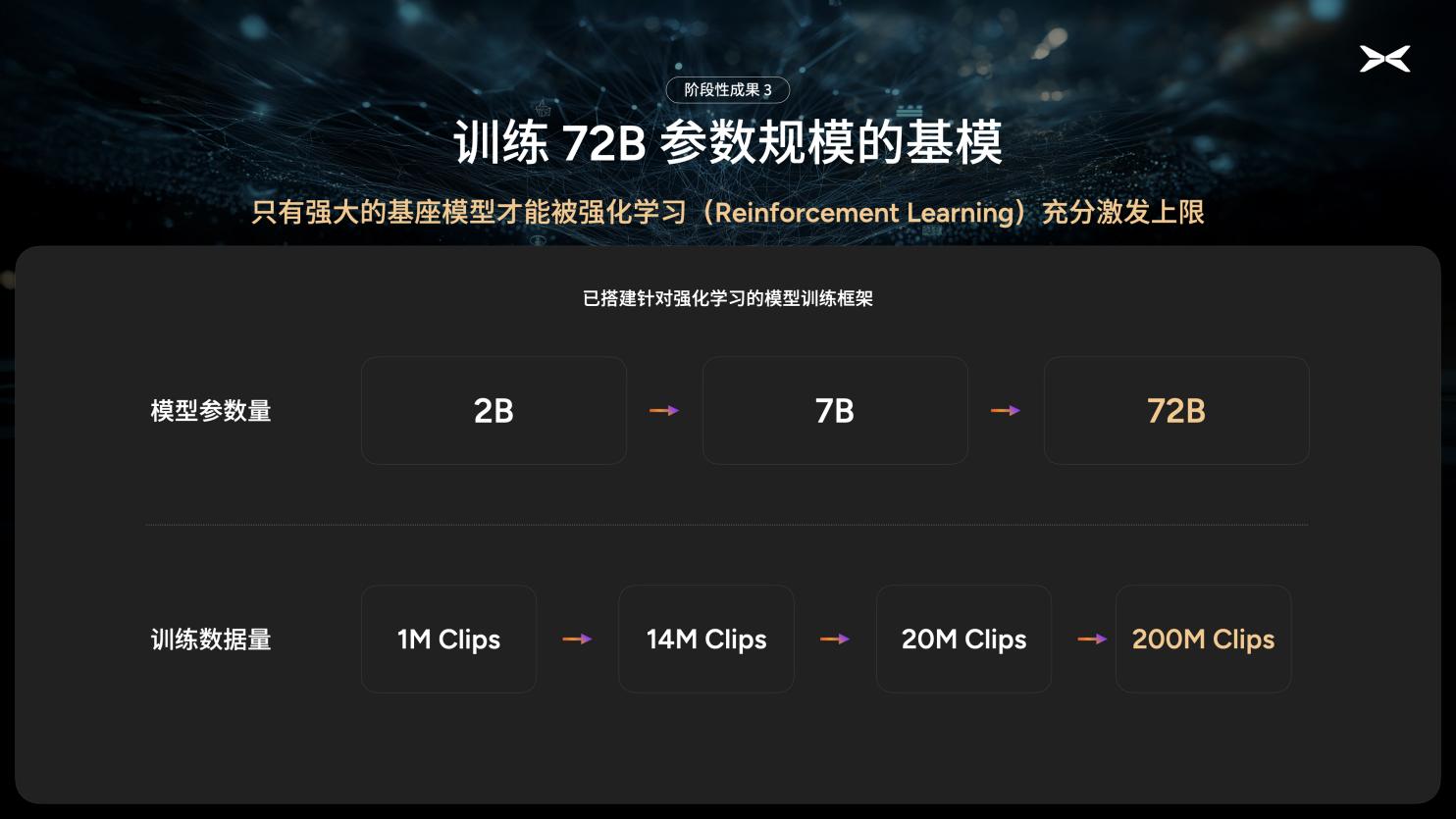 阶段性成果3:启动72B参数基模训练,搭建针对强化学习的模型训练框架。