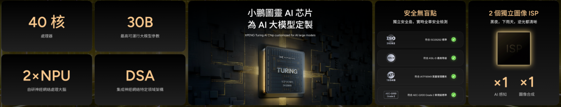 算力是智能驾驶的核心瓶颈。小鹏自研的图灵AI芯片,凭借40核处理器和三倍于现有芯片的计算能力,成为全球首颗可同时应用于汽车、飞行汽车及AI机器人的跨场景芯片。该芯片单颗可运行300亿参数的本地模型,支持L3级智驾所需的实时决策与冗余算力。2025年第二季度,图灵芯片将率先量产上车,成为小鹏智驾系统的“大脑”。