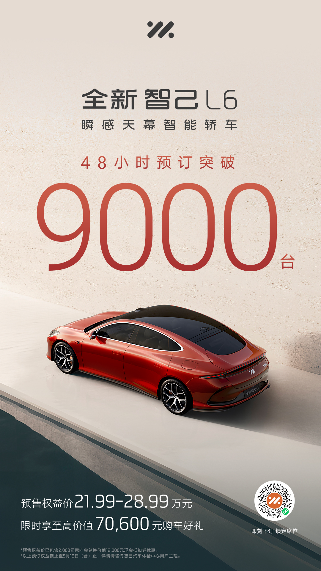 “瞬感天幕智能轿车”全新智己L6于4月18日正式发布,开启预售短短48小时,订单突破9,000台,以“高定时尚单品”的超高人气强势出圈!