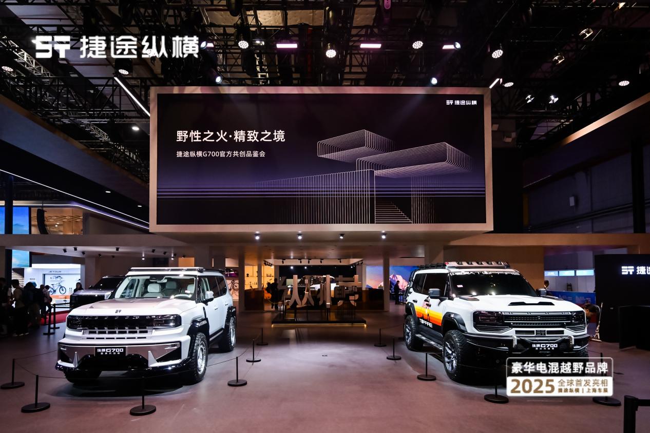 4月24日,第二十一届上海国际车展进入第二日,继捷途纵横全系产品全球首发亮相引爆关注霸榜热搜之后,“野性之火·精致之境”——捷途纵横G700官方共创品鉴会又带来一场关于越野改装的盛宴。活动现场,捷途纵横与中国顶火车会、超境汽车两大顶级改装品牌联袂,带来纵横G700顶火共创版、纵横G700超境共创版,诠释了"野性的精致"品牌哲学,开创了中国豪华电混越野的破界新范式。