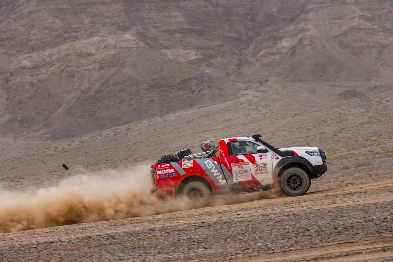 长城哈弗车队,猛龙燃油版和H9柴油版参加比赛。猛龙燃油版虽然定位城市SUV,但2.0T+9DCT的动力总成以及全新第六代智能四驱系统,仍然展现出了卓越的可靠性和耐久性,完美扛住了环塔赛场近60℃高温沙海的考验;H9柴油版搭载2.4T+9AT动力总成,配备TOD智能四驱+Mlock机械锁止,搭配前/后桥电控机械式差速锁,组成真正三把锁,面对环塔赛场复杂的地形游刃有余。