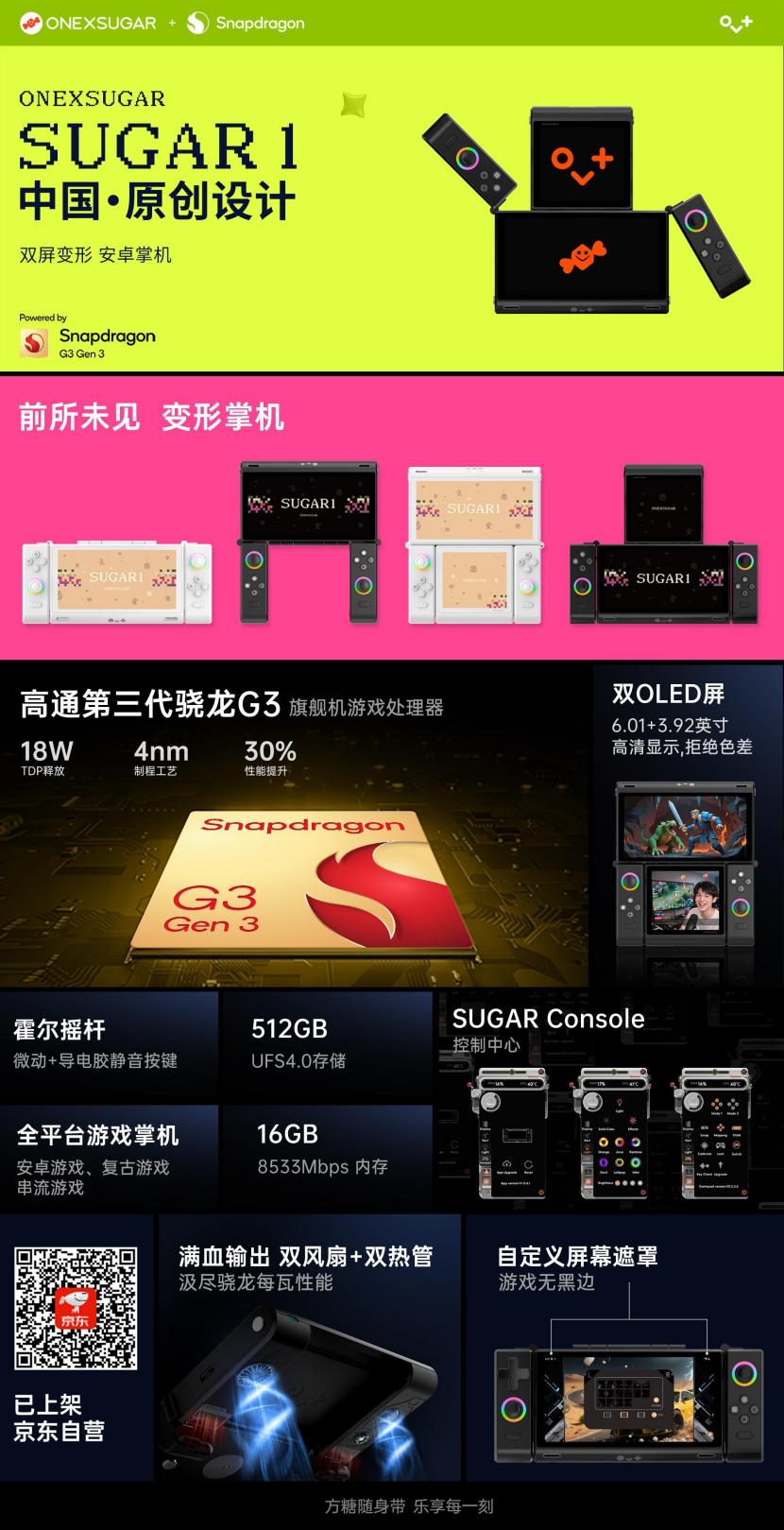 壹号方糖ONEXSUGAR SUGAR 1则以其中国原创的变形模块化结构赢得现场嘉宾的广泛好评。该设备支持单双屏形态自由切换,突破传统掌机形态限制。