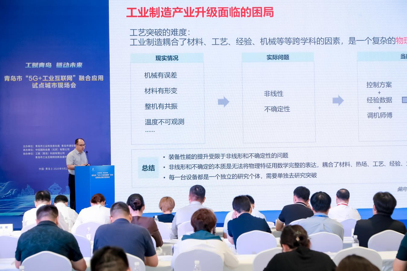 王峰在致辞中表示,党中央、国务院高度重视工业互联网发展,经过多年努力,我国工业互联网从无到有、从小到大、发展壮大,体系化发展走在全球前列,为加快形成新质生产力、推进新型工业化、建设现代化产业体系提供了坚实支撑。青岛立足先导试点城市,加快推进,卓有成效,5G工厂名录数量排名全国前列。2025年是推进“5G+工业互联网”升级版的第一年,将聚焦“加快工业互联网创新发展”,持续强化工业互联网体系化建设,加快推动工业互联网与人工智能双向赋能,深化工业互联网与产业链融合应用,打造以“5G+工业互联网”为引领的新型工业网络体系。希望青岛再接再厉,进一步打造成为全国“5G+工业互联网”发展高地,为全国工业互联网发展贡献青岛智慧。