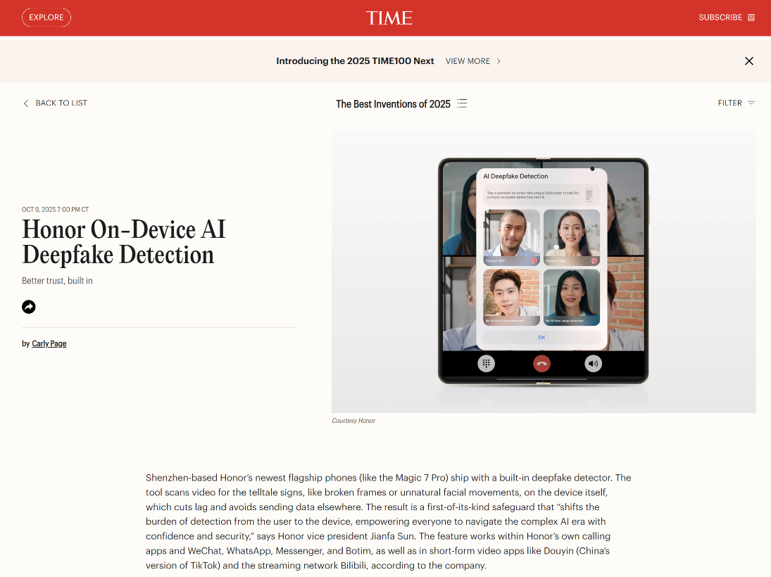 斩获国际认可!荣耀摘得《时代周刊》2025主榜两项最佳发明